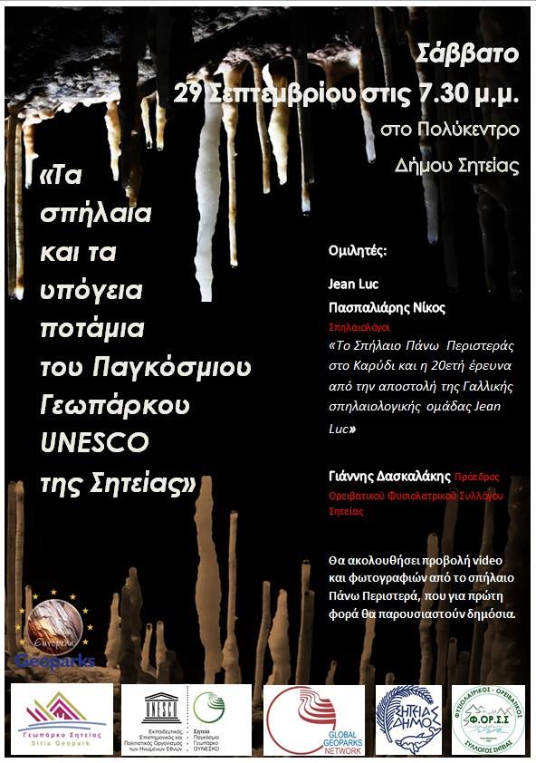 Πρόσκληση σε ημερίδα «Τα σπήλαια και τα υπόγεια ποτάμια του Παγκόσμιου Γεωπάρκου UNESCO της Σητείας»